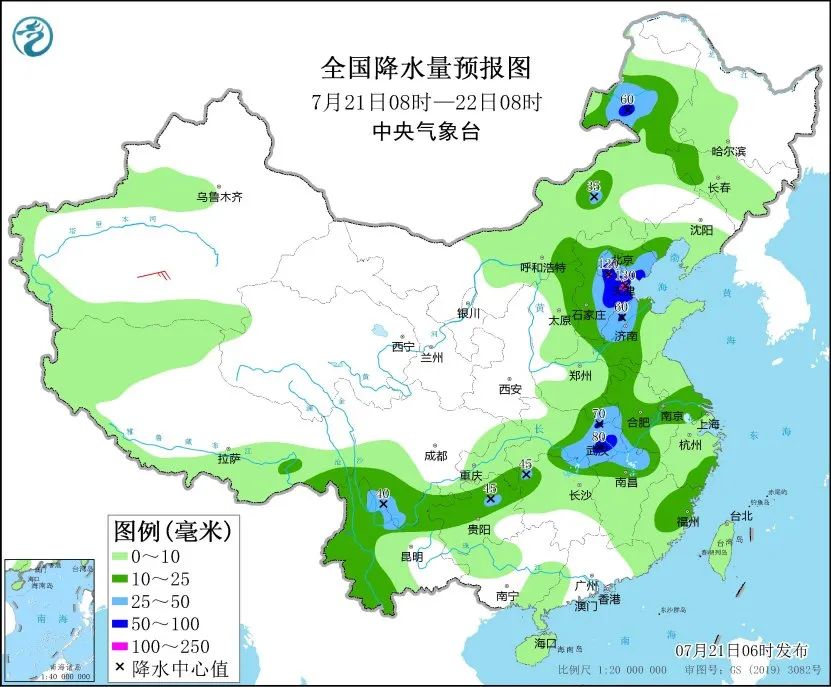 中央氣象臺(tái)7月21日06時(shí)繼續(xù)發(fā)布暴雨藍(lán)色預(yù)警,預(yù)計(jì)內(nèi)蒙古東北部、河北東部、北京、天津、山東西北部、河南東南部、湖北東部、江西北部、四川南部等地部分地區(qū)有大到暴雨,其中,河北中部、北京東南部、天津南部等地局地有大暴雨。氣象專家提醒,預(yù)計(jì)未來(lái)三天,華北及東北等地多降雨,部分地區(qū)累計(jì)雨量較大。