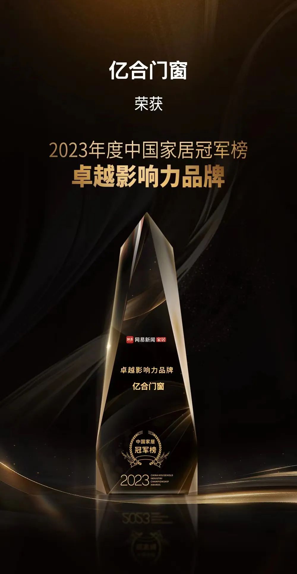 2023年度中國家居冠軍榜出爐,億合門窗攬獲兩大獎(jiǎng)項(xiàng)!