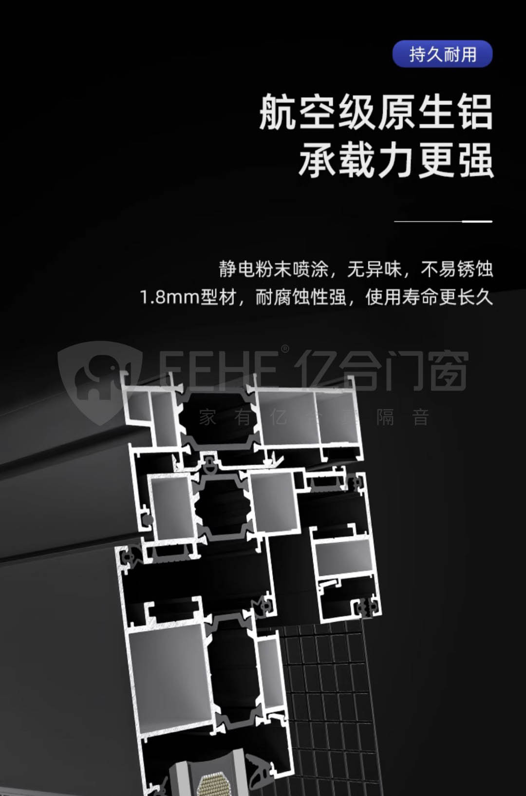面對(duì)臺(tái)風(fēng)的肆虐,門窗的抗風(fēng)壓性和牢固性成為了首要考量因素。門窗型材的厚度、硬度、耐腐度、抗氧化都和門窗的抗風(fēng)壓性及支撐力掛鉤。億合門窗優(yōu)選高精級(jí)鋁合金型材,產(chǎn)品均達(dá)到新國(guó)標(biāo)壁厚1.8mm甚至超新國(guó)標(biāo)壁厚設(shè)計(jì),確保整窗有足夠的強(qiáng)度和穩(wěn)定性。同時(shí),億合門窗配置國(guó)家3C認(rèn)證鋼化玻璃或夾膠玻璃等安全玻璃,以提高門窗抗沖擊性和防爆性能,讓門窗在面對(duì)暴雨強(qiáng)風(fēng)襲擊時(shí),依然堅(jiān)固厚實(shí),杜絕安全隱患。