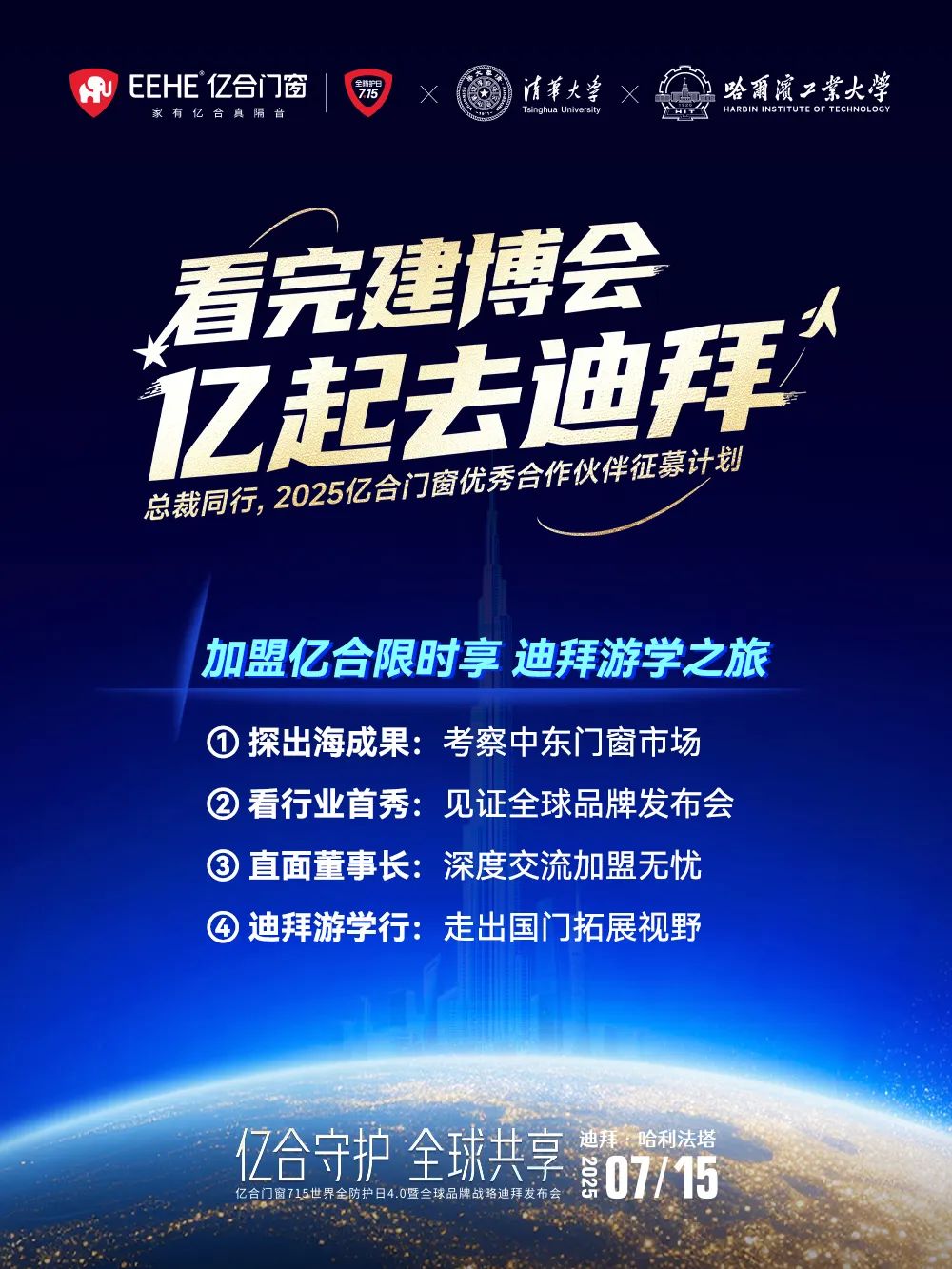 億合守護 全球共享-億合門窗715世界全防護日4.0暨全球品牌戰(zhàn)略迪拜發(fā)布會即將盛大啟幕;守護,從初心到征程,山海無阻,以誠匯盟億合邀您共筑全球美好人居,讓世界見證: 中國品牌,在守護中崛起!億合全球守護聯(lián)盟招募計劃已啟動。