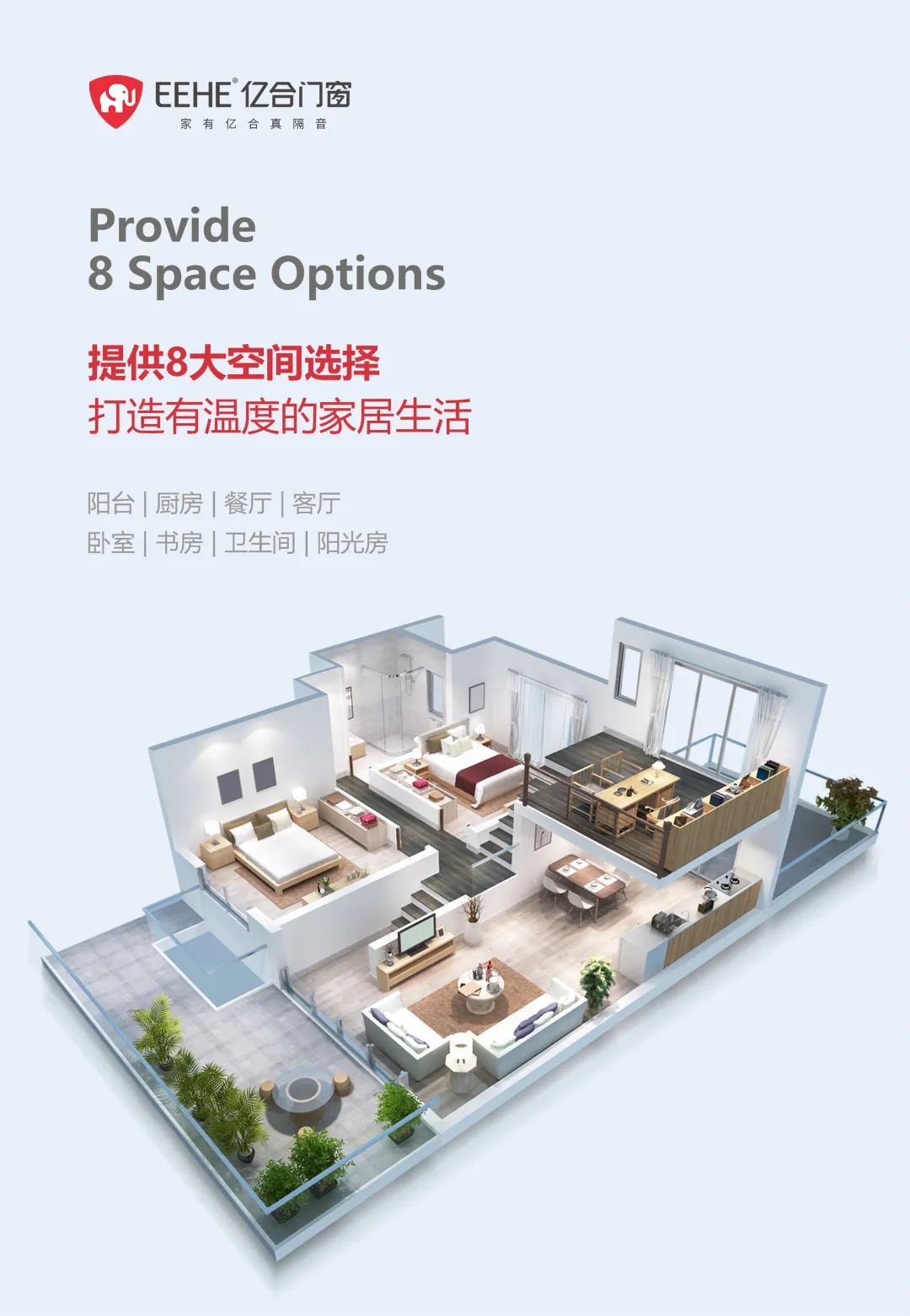 為滿足不同消費者的多樣化需求,億合門窗結(jié)合陽臺、廚房、餐廳、客廳、臥室、書房、衛(wèi)生間、陽光房8大空間,構(gòu)建了豐富的產(chǎn)品體系,品類涵蓋平開窗、平開門、推拉窗、推拉門、吊趟門、陽光房等。多種個性化選擇滿足不同家居風(fēng)格,無論是時尚簡約的現(xiàn)代風(fēng)格門窗,還是古典大氣的中式風(fēng)格門窗;無論是溫馨舒適的暖色調(diào),還是清新雅致的冷色調(diào),億合門窗都緊跟市場潮流,深度滿足消費者的多樣化需求,推陳出新,讓產(chǎn)品保持競爭力,覆蓋更廣泛的客戶群體,為門店帶來源源不斷的訂單。