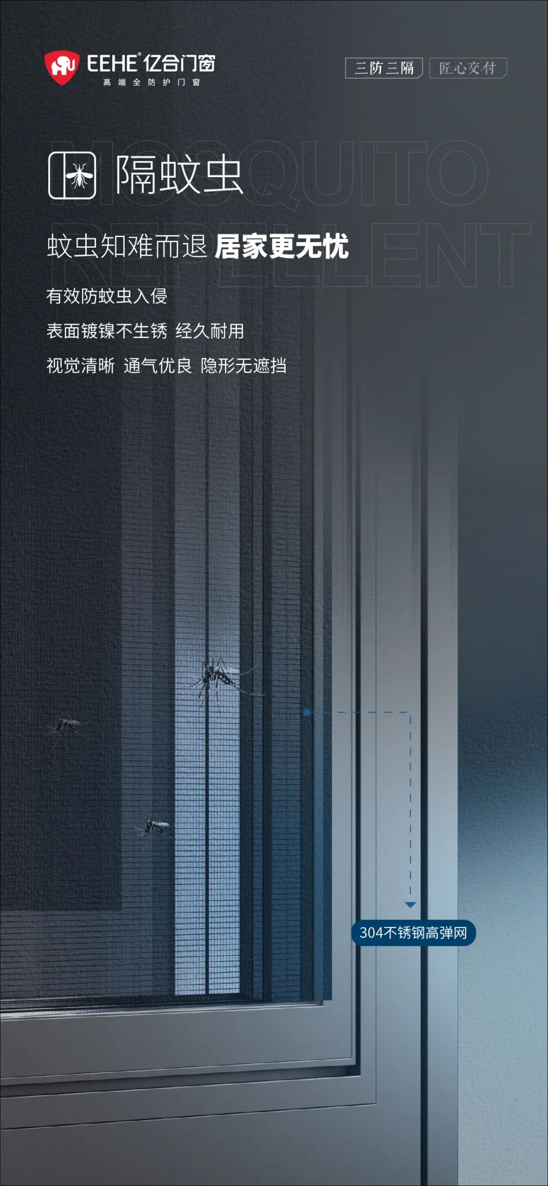 隔蚊蟲,呵護(hù)家人健康。春夏蚊蟲肆虐,不僅叮咬讓人瘙癢難忍,還會(huì)傳播細(xì)菌和疾病,影響家人健康和生活質(zhì)量。億合門窗配備不銹鋼金剛紗網(wǎng),紗網(wǎng)采用高精密編織工藝,網(wǎng)眼細(xì)小,能有效阻擋蚊蟲、蒼蠅等進(jìn)入室內(nèi),同時(shí)不影響通風(fēng)和采光。紗網(wǎng)還具有抗腐蝕、耐磨損的特點(diǎn),使用壽命長。在開啟門窗通風(fēng)時(shí),無需擔(dān)心蚊蟲侵?jǐn)_,讓清新空氣自由流通,守護(hù)家居環(huán)境潔凈,為家人的健康保駕護(hù)航。