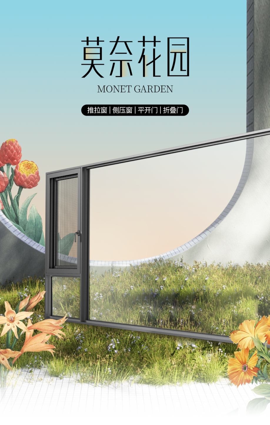 在設(shè)計(jì)美學(xué)層面,「莫奈花園系列」采用極簡主義風(fēng)格,通過簡約的線條設(shè)計(jì)與大面積中空玻璃的搭配,最大化拓展室內(nèi)視野;同時(shí),產(chǎn)品提供多種個(gè)性化色彩定制方案,可精準(zhǔn)適配不同家居裝修風(fēng)格,滿足消費(fèi)者對生活美學(xué)的多元追求。