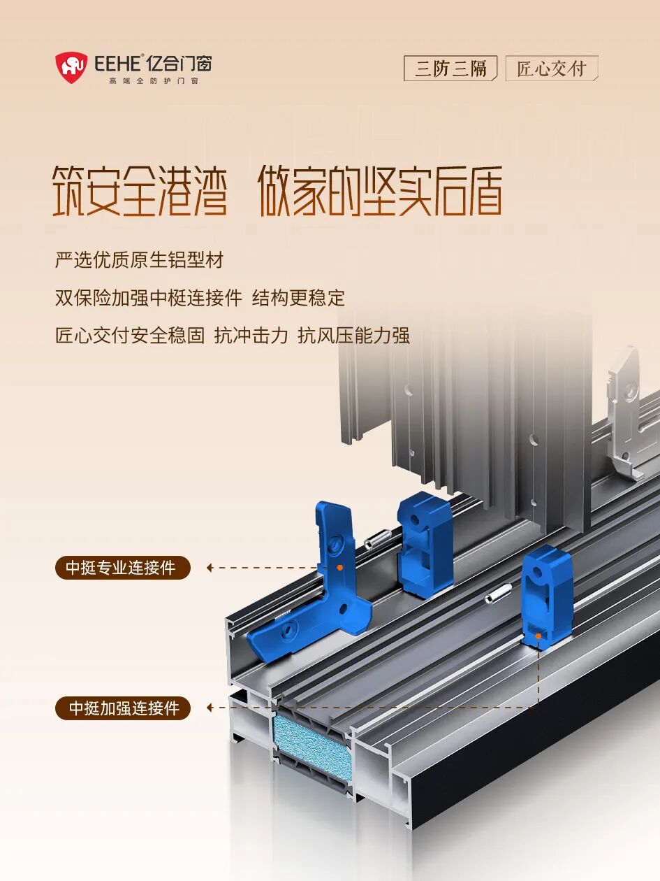 長輩的居家安全,藏在門窗的每一處細(xì)節(jié)里。億合門窗采用航空級(jí)原生鋁型材,執(zhí)行1.8mm國標(biāo)壁厚標(biāo)準(zhǔn),配合加強(qiáng)中梃與一體式注膠角碼工藝,長期使用也不易出現(xiàn)變形、開裂、銹蝕等問題,即便遭遇超強(qiáng)臺(tái)風(fēng)和暴雨也能穩(wěn)固挺立,守護(hù)居家安全。