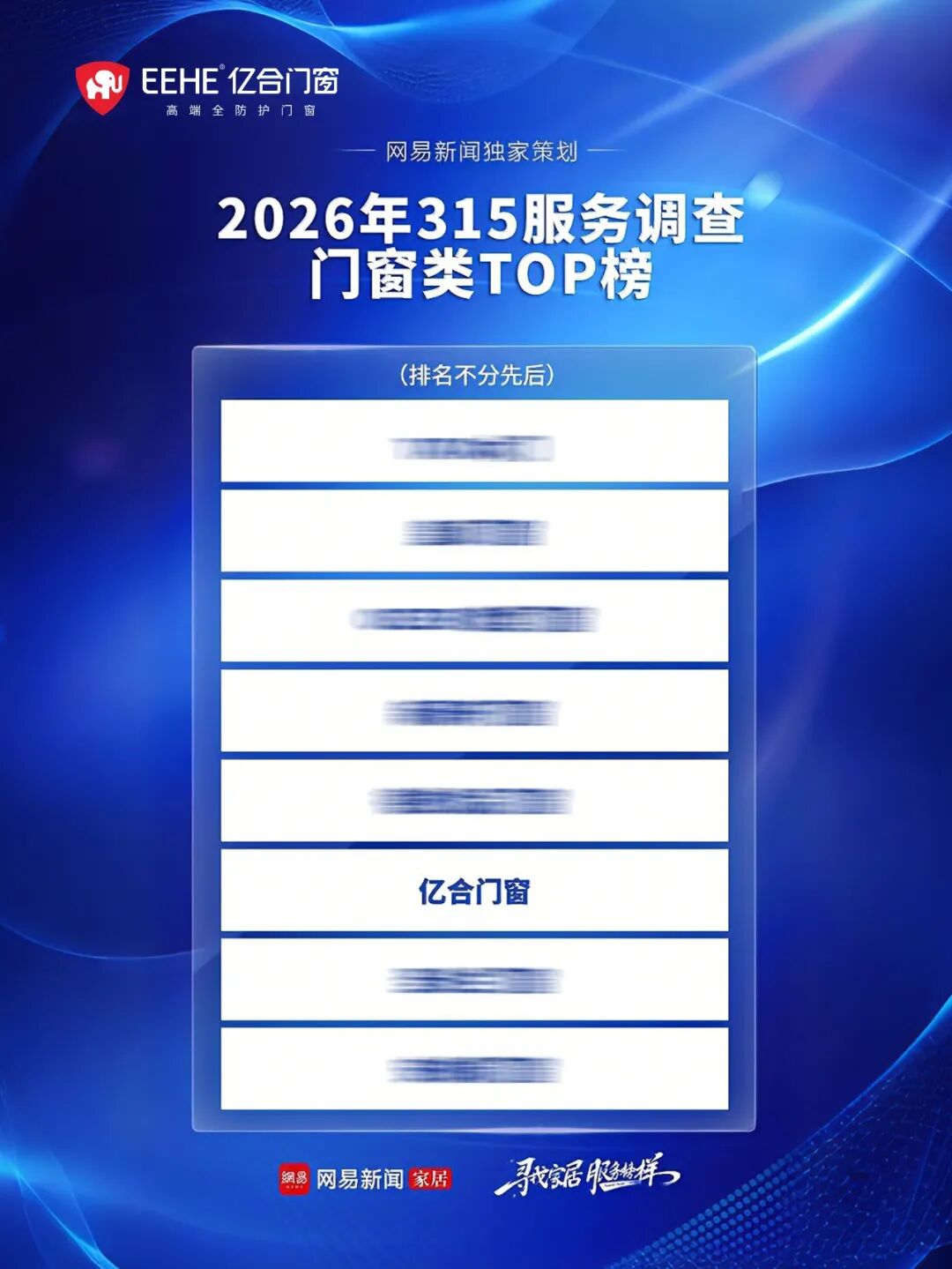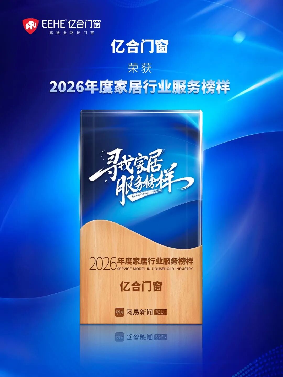 近日,2026網(wǎng)易家居315家居服務(wù)TOP榜單正式發(fā)布,億合門窗憑借優(yōu)質(zhì)服務(wù)與卓越品牌實力,獲得「2026年度家居行業(yè)服務(wù)榜樣」榮譽稱號。