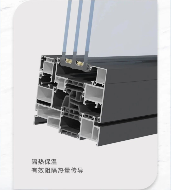 億合門窗由多腔體斷橋鋁+隔熱條構(gòu)成