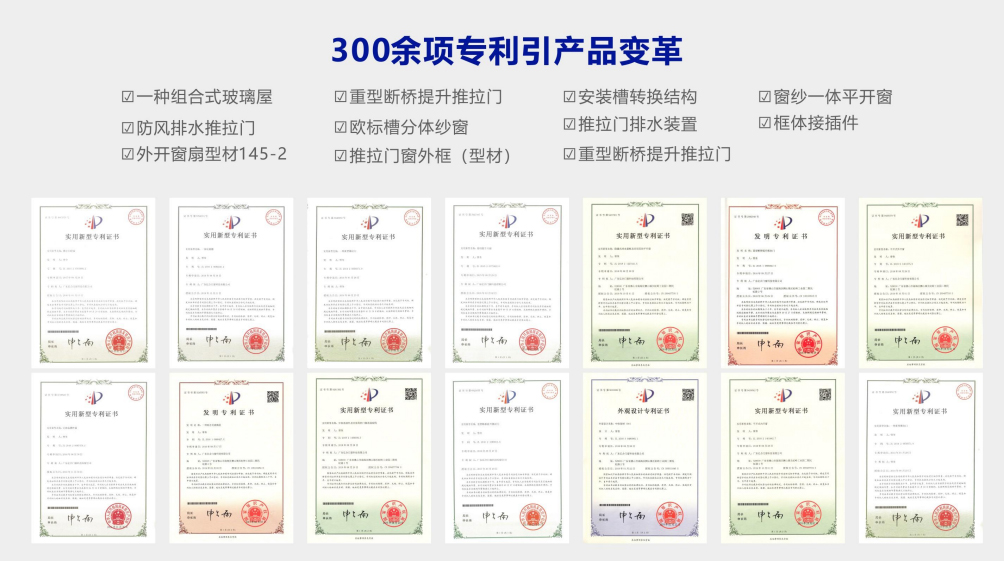 依托自主研發(fā)、堅(jiān)持原創(chuàng)設(shè)計(jì),截至目前億合門窗已獲得300余項(xiàng)有效專利權(quán)證,不斷提升產(chǎn)品創(chuàng)新力、質(zhì)量把控力,領(lǐng)先行業(yè)推動(dòng)品質(zhì)升級(jí)。
