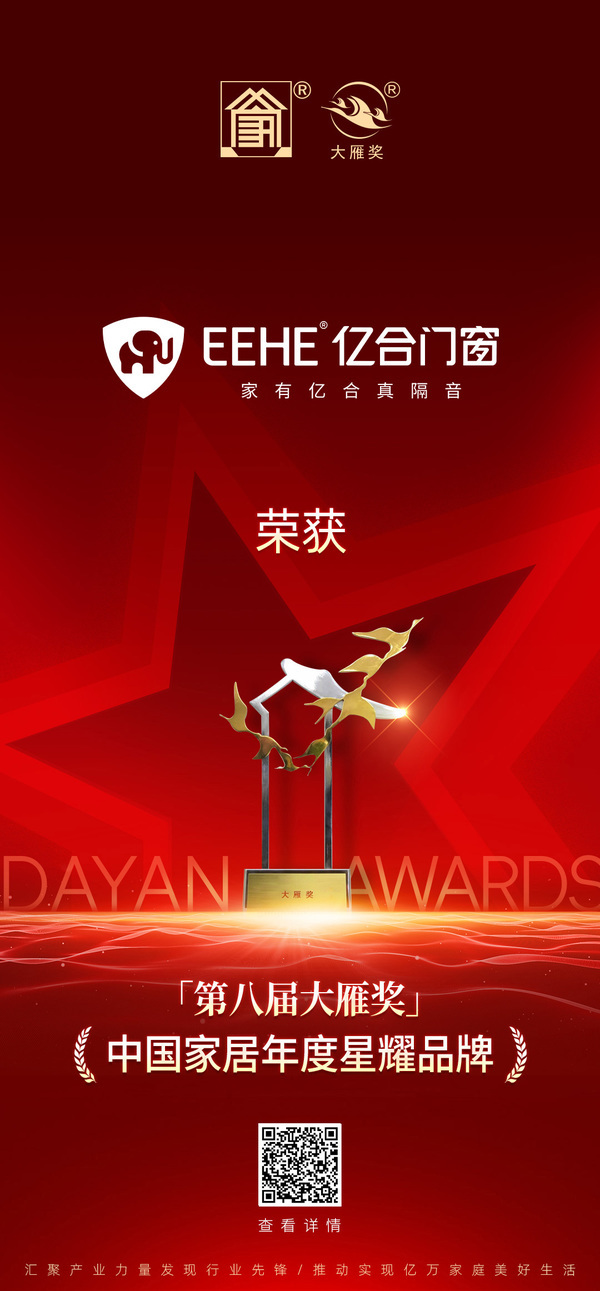 重磅揭曉!億合門窗榮獲「第八屆大雁獎——中國家居年度星耀品牌」獎項(xiàng)稱號