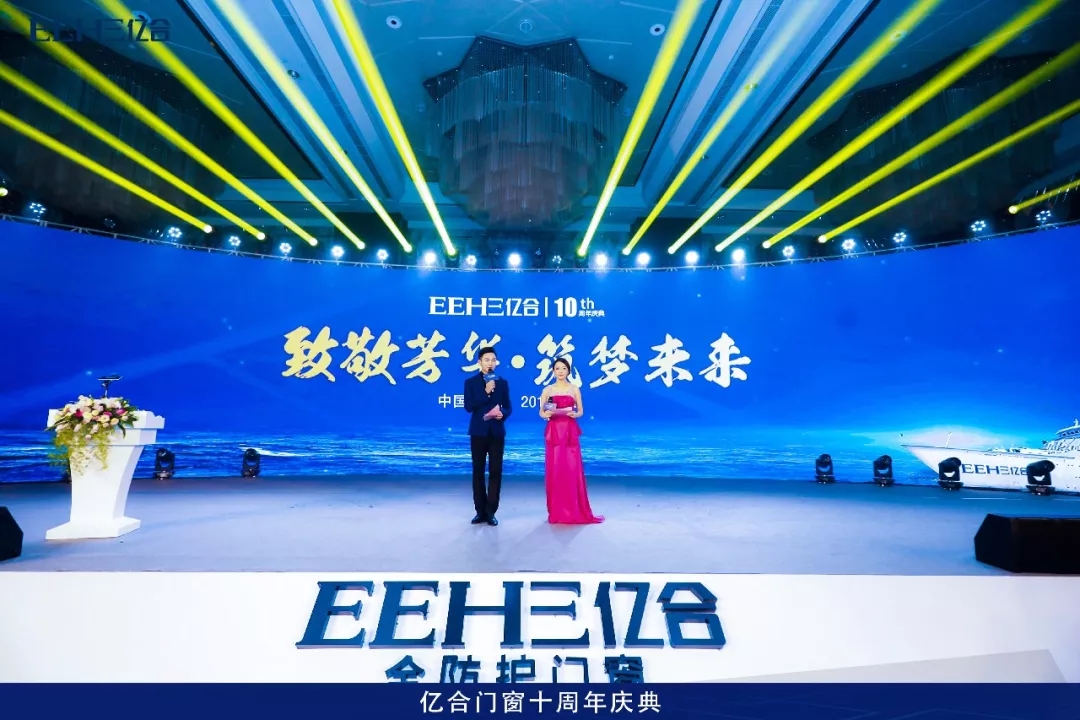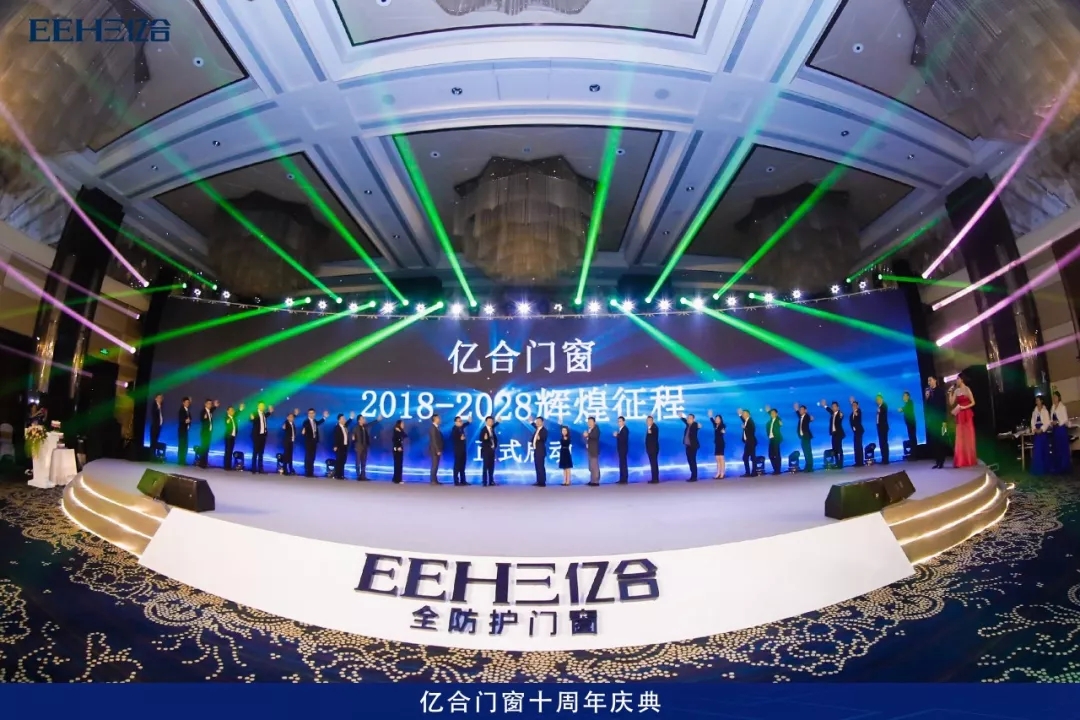 億合門窗十周年盛典在一場震撼的燈光秀中正式拉開了序幕。一段《 芳華十載》的紀(jì)錄片,讓在場的嘉賓共同回憶了億合門窗這十年來的輝煌歷程。