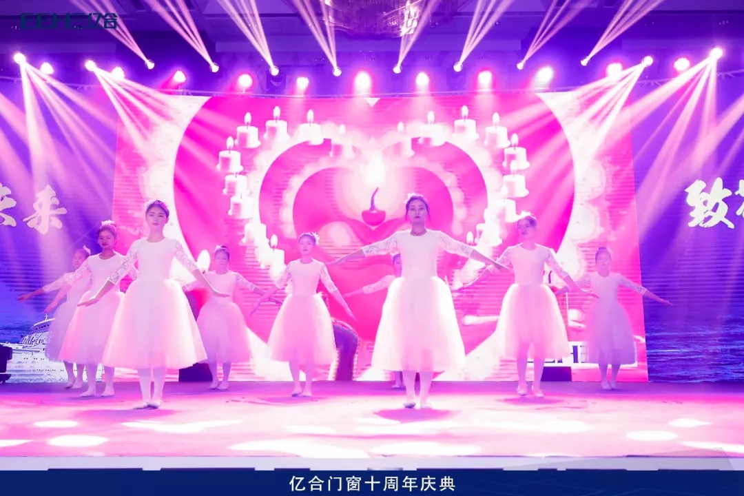 緊接著一支唯美中帶著張力的月光舞,仿佛在訴說著億合門窗10年來的故事,其中蘊(yùn)含感動(dòng)與感恩,把開場的氣氛推向高潮~