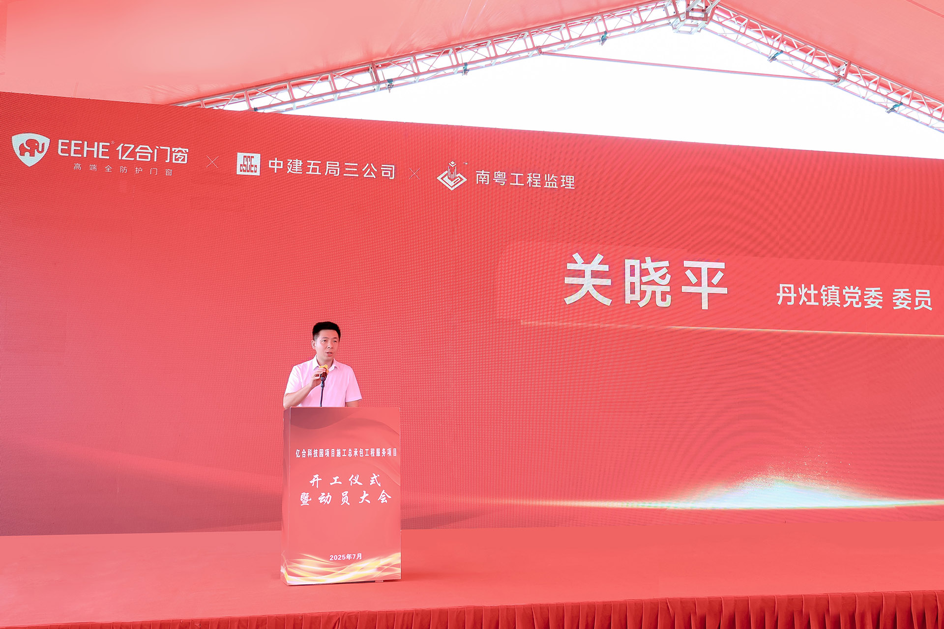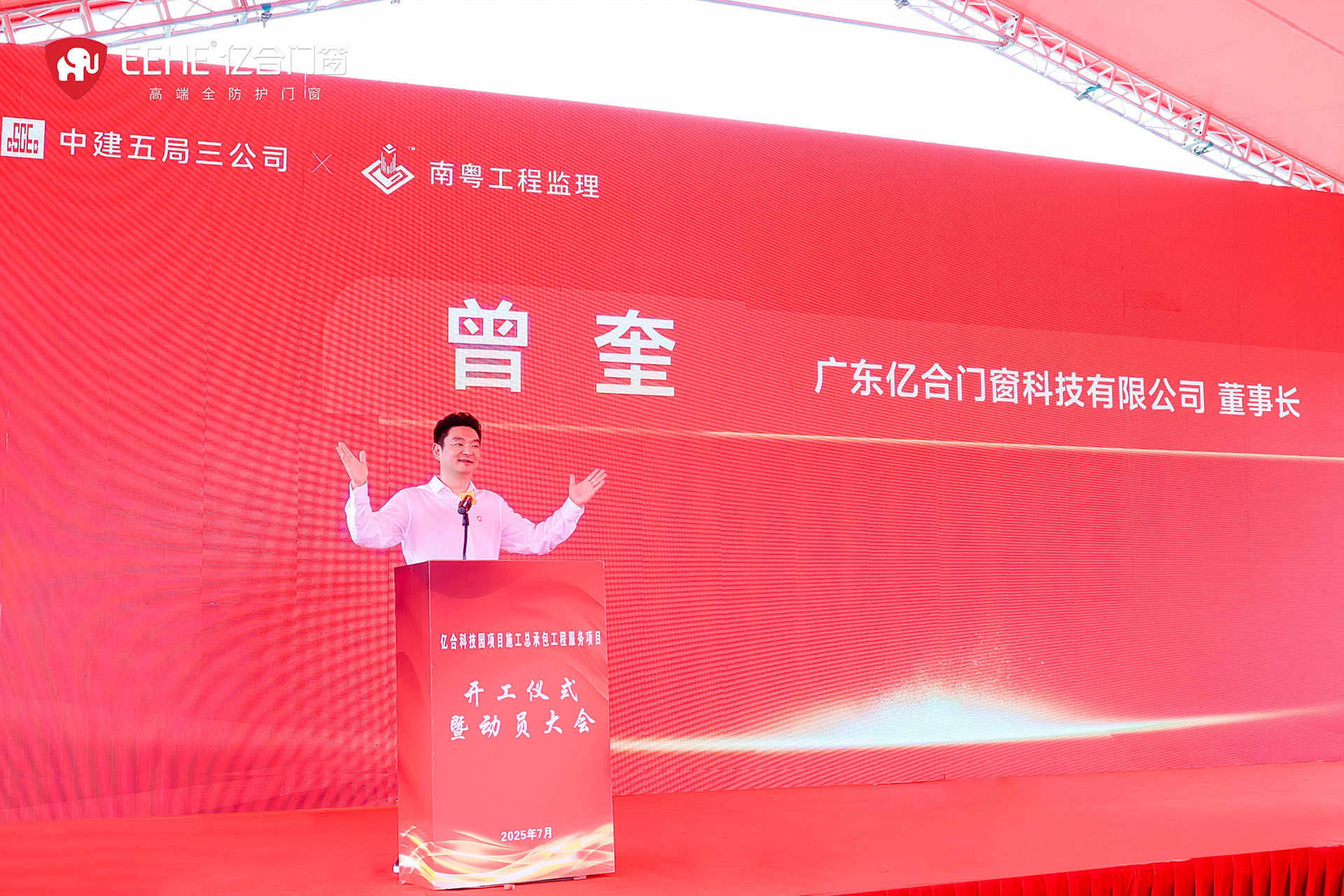 丹灶鎮(zhèn)黨委委員關(guān)曉平在講話中指出,億合科技園施工總承包開工,不僅體現(xiàn)了企業(yè)對丹灶投資環(huán)境的認可,更彰顯了企業(yè)扎根丹灶、長遠發(fā)展的決心,也必將為丹灶智能安全應(yīng)急產(chǎn)業(yè)、門窗行業(yè)的高質(zhì)量發(fā)展注入新動能。希望億合門窗以建設(shè)億合科技園為契機,積極整合行業(yè)大中小企業(yè)資源,帶動產(chǎn)業(yè)鏈上下游企業(yè)集聚入園、協(xié)同發(fā)展;充分發(fā)揮龍頭引領(lǐng)作用,推廣“三防三隔”+“匠心交付”的6+1全防護體系新標(biāo)準(zhǔn),大力應(yīng)用綠色節(jié)能新材料、新技術(shù),推動門窗產(chǎn)業(yè)智能化、綠色化轉(zhuǎn)型,引領(lǐng)行業(yè)發(fā)展潮流的同時,也為全鎮(zhèn)建筑外窗工程質(zhì)量提升貢獻更大力量。