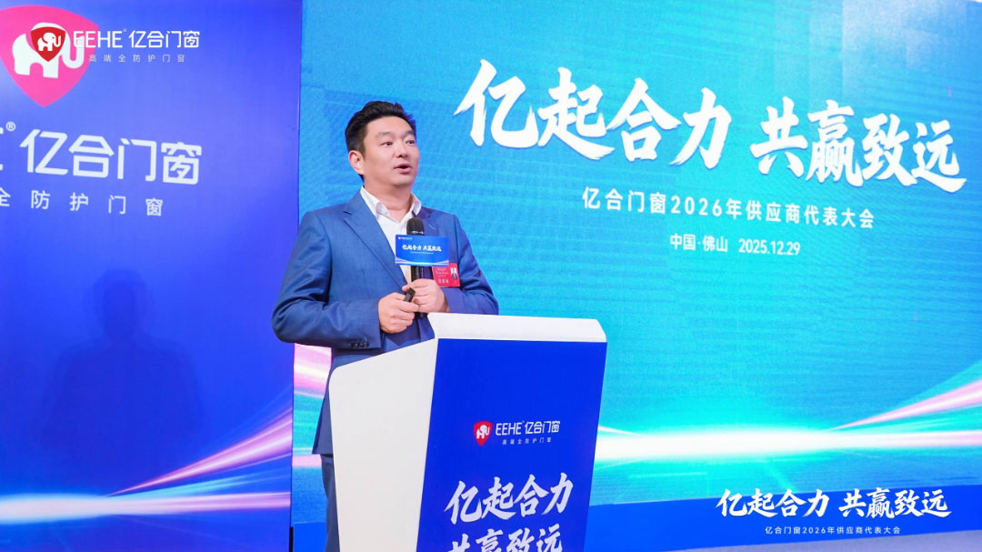 大會上,億合集團董事長曾奎發(fā)表主旨講話。曾董分享了億合科技園的建設(shè)進度與品牌出海成果,并提出,2026年,億合門窗將適新應(yīng)變,以“協(xié)、準、質(zhì)”三維戰(zhàn)略錨定供應(yīng)鏈升級方向,打造精益運營、效率驅(qū)動、品質(zhì)領(lǐng)先的供、產(chǎn)、研協(xié)同系統(tǒng),實現(xiàn)標準化、信息化、系統(tǒng)化,攜手伙伴共建世界級門窗產(chǎn)業(yè)生態(tài)。
