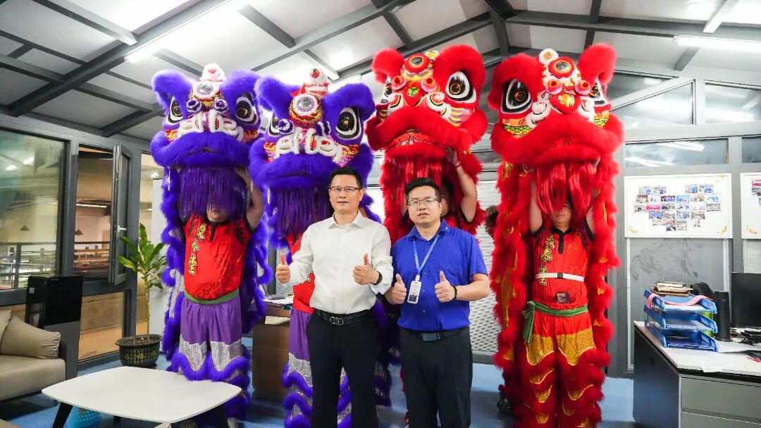 吉時(shí)啟運(yùn),祥瑞滿堂。開工儀式現(xiàn)場(chǎng)鞭炮齊鳴、聲震云霄,滌蕩舊歲塵囂,凝聚奮進(jìn)力量,祈愿全體億合家人及合作伙伴福暖四季、萬事順?biāo)臁|合集團(tuán)董事長(zhǎng)曾奎、億合集團(tuán)副董事長(zhǎng)兼總裁胡超、億合門窗財(cái)務(wù)中心總監(jiān)溫福華、億合門窗制造中心總監(jiān)童軍共同為醒獅點(diǎn)睛,點(diǎn)活雄獅靈氣,點(diǎn)亮發(fā)展宏圖。隨即醒獅騰躍采青,瑞氣盈門,象征億合門窗基業(yè)長(zhǎng)青、蒸蒸日上、財(cái)源廣進(jìn)。