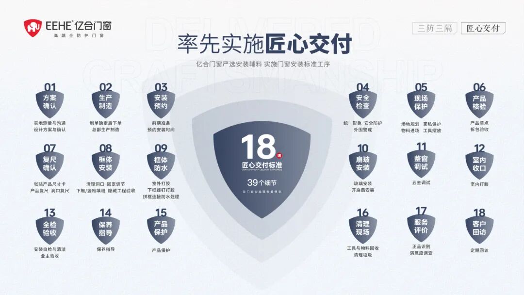 同時,面對復雜氣候和消費者日益提升的品質要求,億合門窗從未停止追求卓越的腳步,行業(yè)首創(chuàng)“三防三隔”全防護系統(tǒng),把防臺風、防漏水、防墜落,隔噪音、隔高低溫、隔蚊蟲的守護融于門窗性能,全面解決家居生活中的各種痛點。不僅如此,為了將產品從工廠完美交付到用戶家中,億合門窗實施“匠心交付”安裝標準,以18道交付工序、39個質量細節(jié),確保交付環(huán)節(jié)安全可靠。這份冠軍品質,是高樓層居住的安心,是臨街環(huán)境的靜謐,是極端天氣下的穩(wěn)固,是節(jié)能減排的省心,更是長久使用的信賴,讓每一位用戶,享受冠軍級的家居防護體驗。