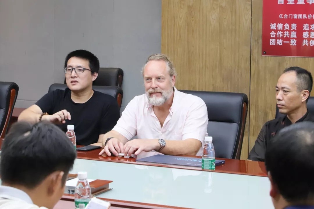 隨后,雙方在廣東省門窗協(xié)會會長單位億合門窗會議中心進(jìn)行座談交流,曾董向Karl先生簡要介紹了億合當(dāng)前的設(shè)計理念以及未來設(shè)計的發(fā)展方向。