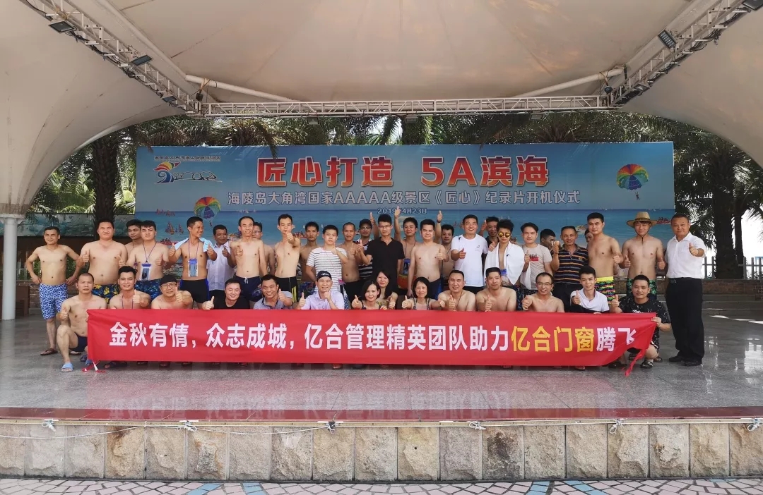 工作不僅僅局限于公司到家的兩點一線,當然還有說走就走的團建活動,2019年9月,億合門窗組織管理層領(lǐng)導開啟了為期兩天一夜的陽江之旅,讓各位優(yōu)秀工作者暫時放下緊張而又忙碌的工作,放松心情,享受一個愉悅的完美假期。