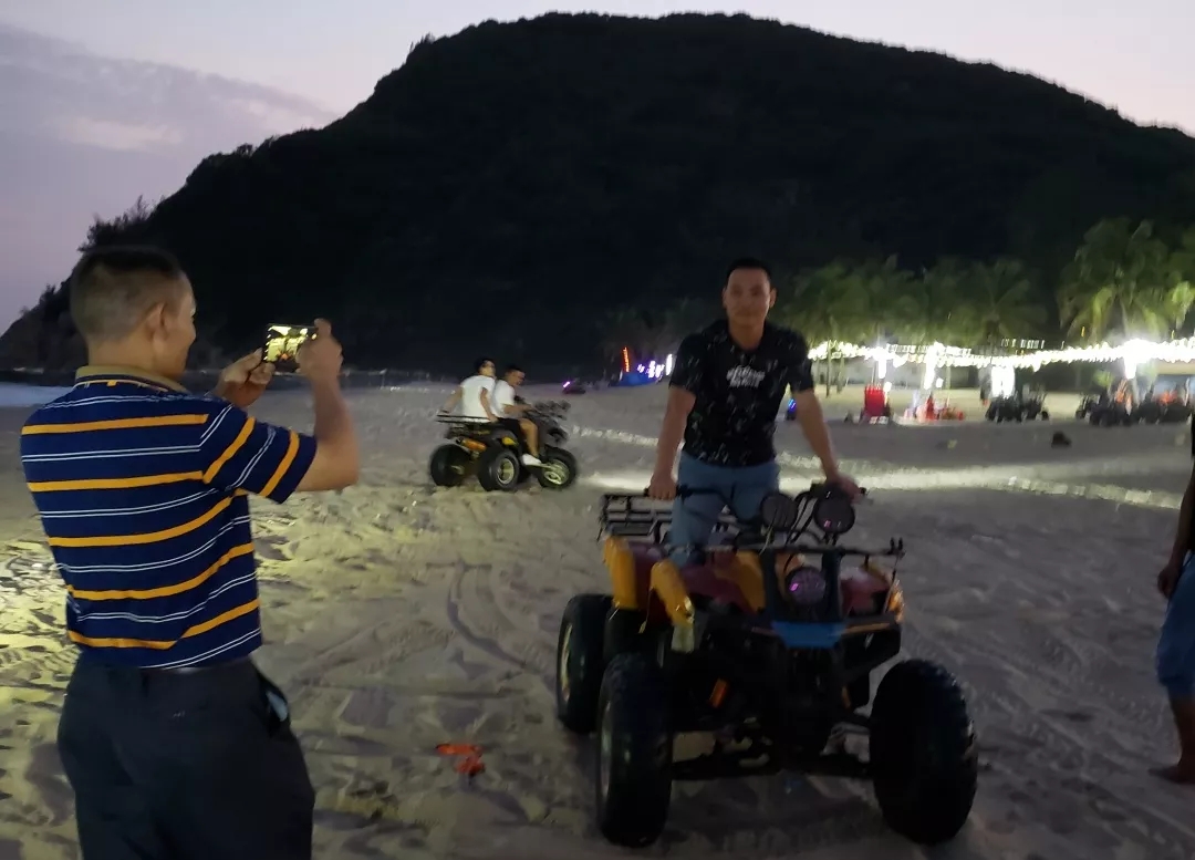 悠悠的海風中帶著陣陣笑語,吹不熄燃燒的篝火中照著每人開心的面容,不時有著沙灘摩托,上演速度激情,車聲轟隆,響切云霄;不是有著水上拔河,上演著一場拉鋸戰(zhàn),加油吶喊,斗志昂揚。