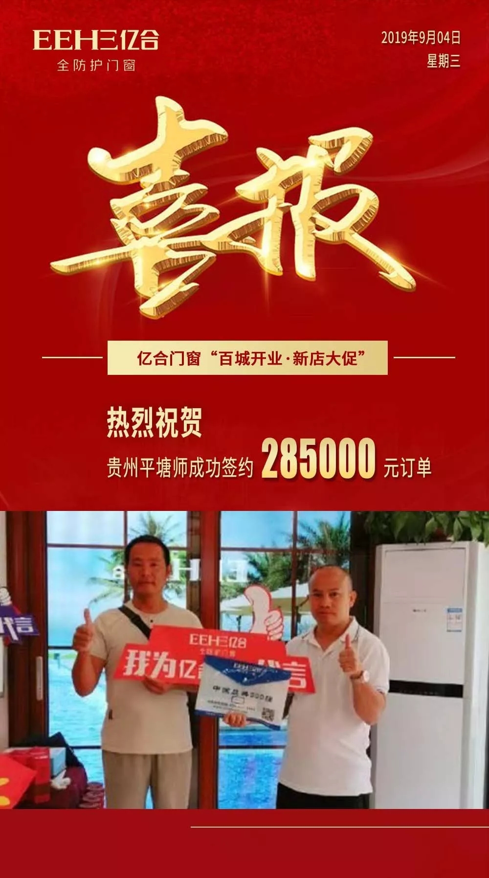 在此次百城新店開(kāi)業(yè)中,億合門(mén)窗貴州平塘店通過(guò)優(yōu)質(zhì)的服務(wù)態(tài)度,成功簽下28.5萬(wàn)元訂單。通過(guò)培訓(xùn)全面提升店員服務(wù)管理,規(guī)范服務(wù)行為以及注重門(mén)窗的售前、售中和售后服務(wù),從而成功簽下了許多大單,提升企業(yè)品牌在當(dāng)?shù)氐拿雷u(yù)度。