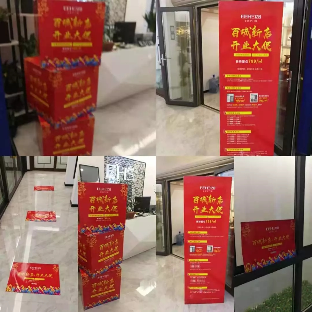 億合門(mén)窗河南焦作店門(mén)頭大氣沉穩(wěn),前臺(tái)、背景典雅時(shí)尚,店內(nèi)精品門(mén)窗琳瑯滿(mǎn)目,喜慶熱鬧的氛圍布置,讓整個(gè)店面容光煥發(fā),處處彰顯億合門(mén)窗沉穩(wěn)大氣的品牌形象和工匠精神,店面的裝修一定程度上不僅吸引了消費(fèi)者的眼球,還為門(mén)店免費(fèi)打了“戶(hù)外廣告”。