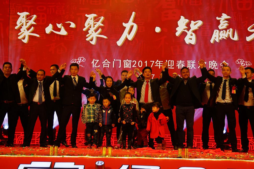 2017年1月12日,以“聚心聚力·智贏未來(lái)”為主題的“億合門窗2017年迎春聯(lián)歡晚會(huì)”在億合門窗科技園隆重舉行。突如其來(lái)的降溫絲毫沒(méi)有阻擋億合門窗家人喜迎新春的熱情,億合門窗董事長(zhǎng)曾奎、常務(wù)副總經(jīng)理胡超、副總經(jīng)理吳忠用、億合門窗各大供應(yīng)商、全國(guó)戰(zhàn)略合作伙伴部分代表及全體億合門窗家人共計(jì)1500余人一起歡聚一堂,為2016年畫下圓滿句號(hào)。