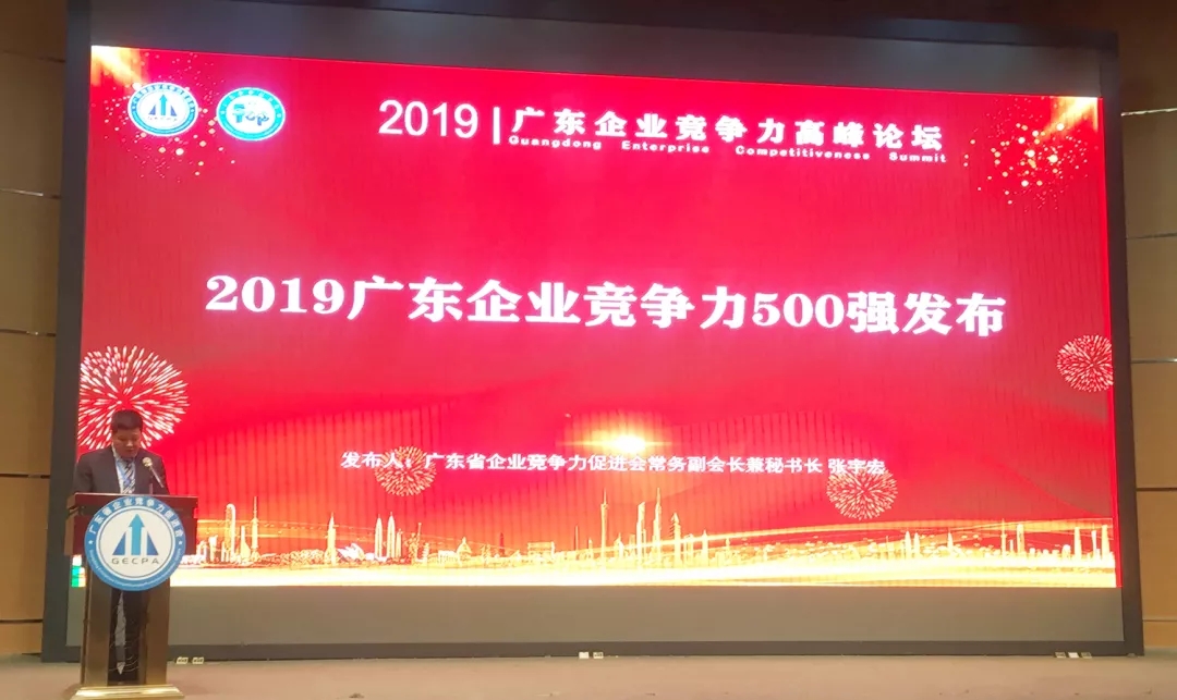 由廣東省企業(yè)競(jìng)爭(zhēng)力促進(jìn)會(huì)主辦的“2019廣東企業(yè)競(jìng)爭(zhēng)力高峰論壇”于12月26日在佛山隆重舉行。會(huì)上發(fā)布了“2019廣東企業(yè)競(jìng)爭(zhēng)力500強(qiáng)”榜單。