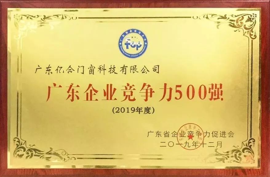 三度蟬聯(lián)!億合門(mén)窗再獲企業(yè)競(jìng)爭(zhēng)力500強(qiáng)殊榮