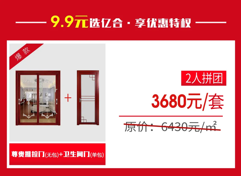 秒殺福利:原價(jià)1350元/套的尊貴平開門,秒殺價(jià)99元/套(單包套限1.5㎡內(nèi))