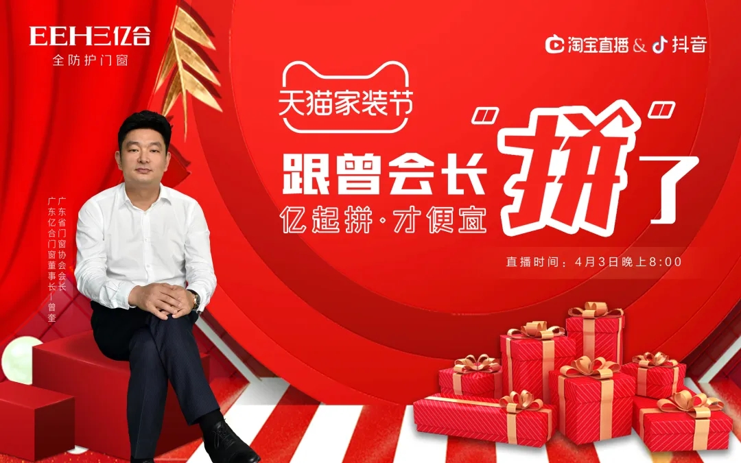 廣東省門(mén)窗協(xié)會(huì)會(huì)長(zhǎng)、億合門(mén)窗董事長(zhǎng)曾奎先生“價(jià)”臨直播間,開(kāi)啟“億起拼,才便宜”的鉅惠放“價(jià)”。