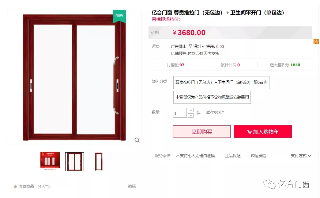 ▲▲直播兩小時(shí),35窄邊推拉門(mén)訂單破18單