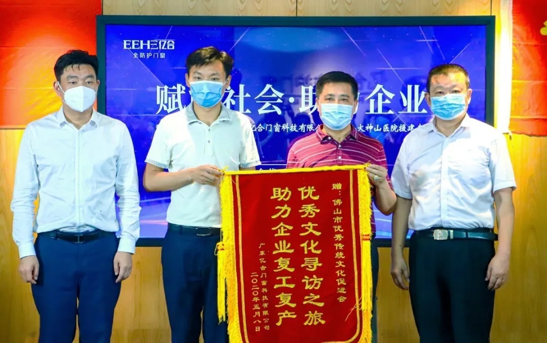 為傳遞正能量,以優(yōu)秀傳統(tǒng)文化提升企業(yè)軟實(shí)力,5月8日上午,佛山市優(yōu)秀傳統(tǒng)文化促進(jìn)會(huì)走進(jìn)廣東省門(mén)窗協(xié)會(huì)會(huì)長(zhǎng)單位億合門(mén)窗,尋訪火神山、雷神山醫(yī)院援建者,致敬抗疫英雄!