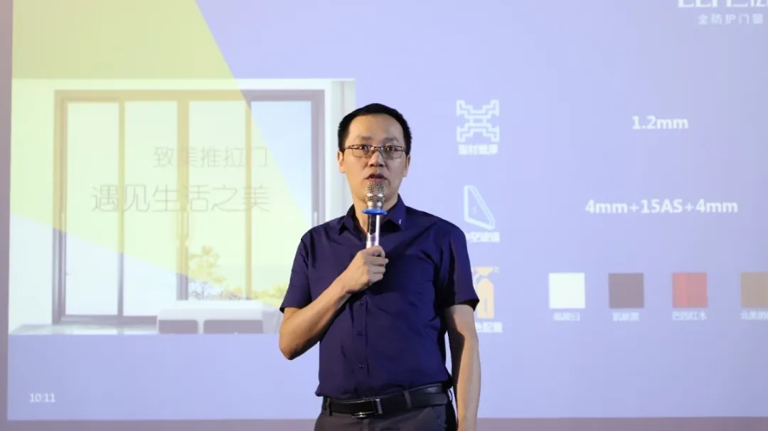 億合門窗商學(xué)院院長(zhǎng)胡敏以專業(yè)的產(chǎn)品知識(shí)向在座的家人講解億合新品的核心賣點(diǎn)、市場(chǎng)主流競(jìng)品分析、技術(shù)研發(fā)性能三大產(chǎn)品模塊內(nèi)容。