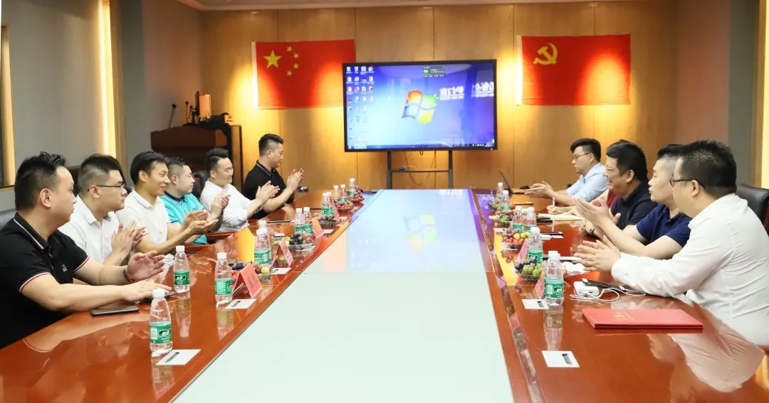 在參觀(guān)完億合科技園后,雙方在億合門(mén)窗1號(hào)會(huì)議室進(jìn)行深入座談交流。首先,胡總對(duì)歐總一行蒞臨廣東省門(mén)窗協(xié)會(huì)會(huì)長(zhǎng)單位億合門(mén)窗表示熱忱的歡迎。