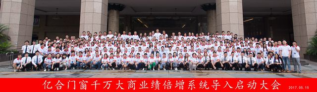 2017年5月15日,億合門窗千萬大商業(yè)績倍增系統(tǒng)啟動大會在佛山皇冠假日酒店隆重舉行,來自全國各地的億合家人齊聚一堂,進(jìn)行三天兩夜緊張而又愉快的學(xué)習(xí)。