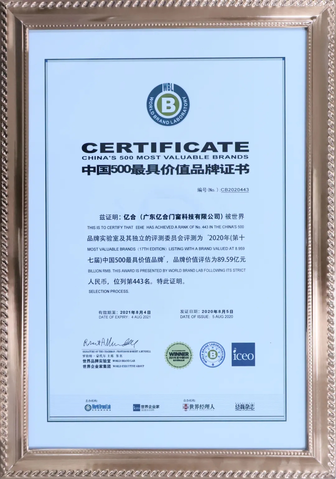 榮譽的桂冠,都是由荊棘紡織而成,通向榮譽的路上,并不是一路坦途和鮮花!在這個飛速發(fā)展的年代,原地踏步便等于退步,只有向前沖刺方才有機會獲得成功。億合門窗自成立以來憑借過硬的品質(zhì)實力,優(yōu)質(zhì)的服務(wù)意識獲得了絕佳的市場口碑,并且通過不斷創(chuàng)新研發(fā),在行業(yè)內(nèi)率先提出“全防護門窗”新概念,奠定了行業(yè)基礎(chǔ),獲得了許許多多的榮譽。