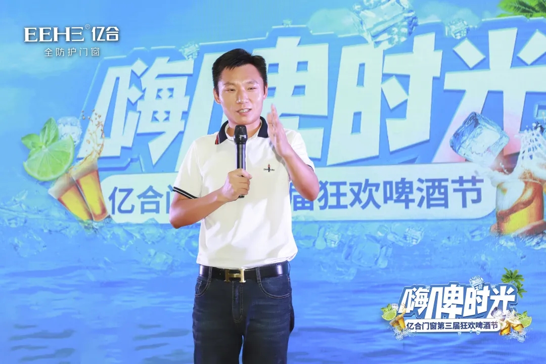 億合門(mén)窗總經(jīng)理胡超為啤酒節(jié)致辭,胡總表示:億合的發(fā)展離不開(kāi)每一位員工努力拼搏,在這里也感謝員工們的熱情工作與辛苦付出。今年再次舉辦啤酒節(jié)活動(dòng),慶祝公司十三周年之余,與大家共同分享公司發(fā)展成果,希望今天大家在這啤酒節(jié)盛宴盡情放松自己,玩得盡興。最后預(yù)祝今晚活動(dòng)圓滿(mǎn)舉辦。