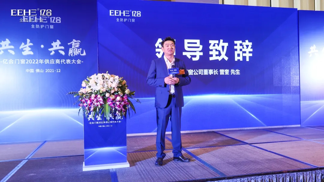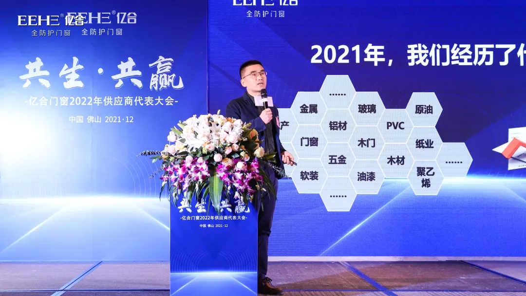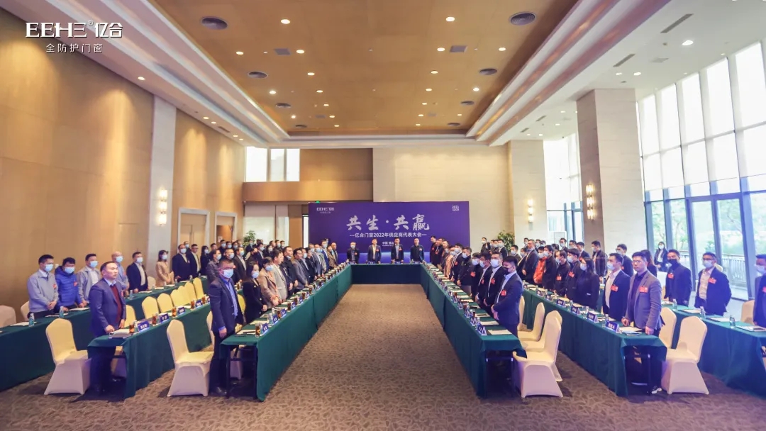 億合門窗董事長曾奎,總經(jīng)理胡超,副總郭遠(yuǎn)志、甘孝東等公司領(lǐng)導(dǎo)同100余位供應(yīng)商代表共同出席大會(huì)。