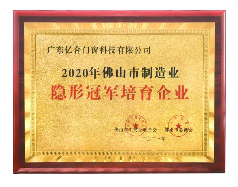 12月29日,億合門窗榮獲“2020年佛山市制造業(yè)隱形冠軍培育企業(yè)”榮譽稱號。