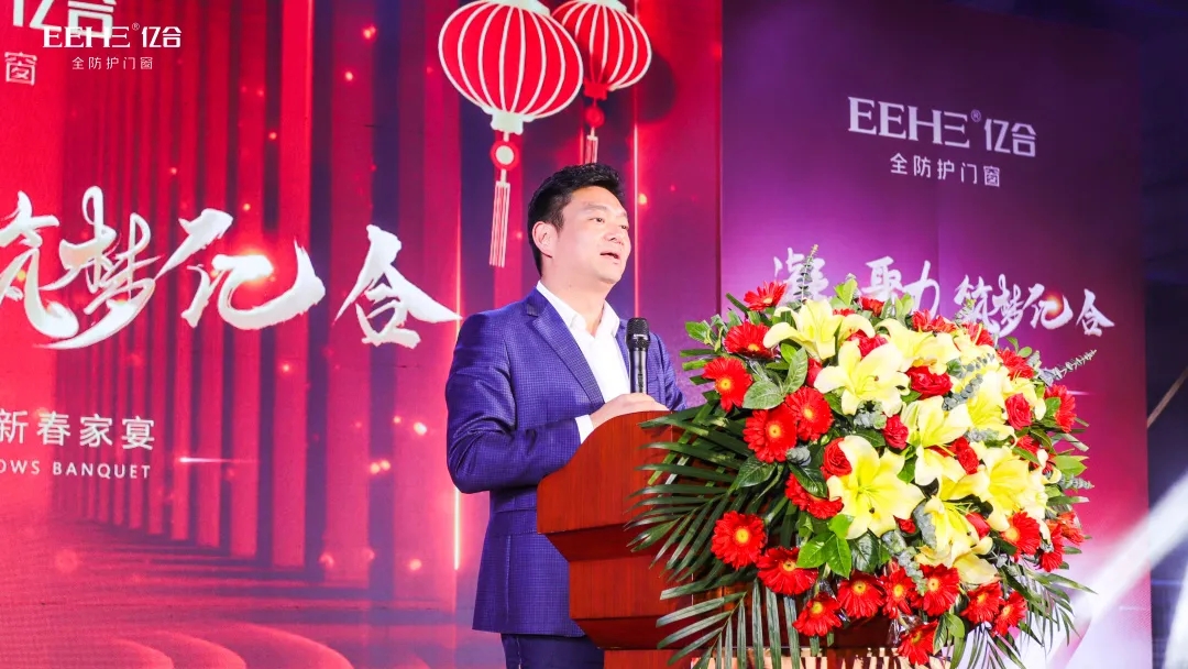 家宴伊始,億合門窗董事長曾奎致歡迎詞。曾董對過去一年里億合家人們的辛勤付出以及戰(zhàn)略合作伙伴的鼎力支持表示衷心感謝,并表達了億合門窗新一年發(fā)展的美好期許。他表示,2022年億合門窗將全力以赴,為行業(yè)注入新的活力,向著品牌的使命砥礪前行。
