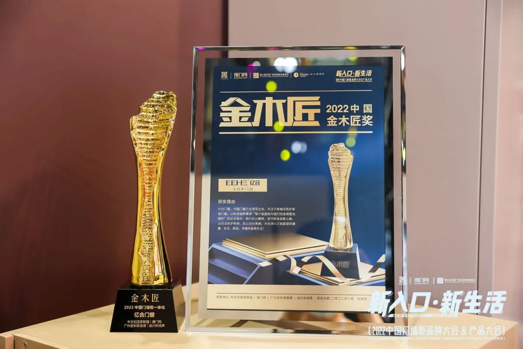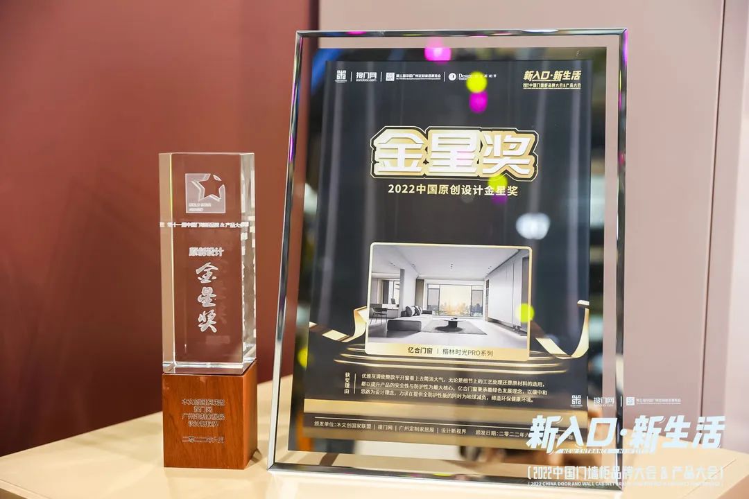 國(guó)品之光,榮譽(yù)加冕;實(shí)至名歸,勢(shì)不可擋。大會(huì)期間還精彩展示了門墻柜行業(yè)取得的豐碩成果,共同見(jiàn)證風(fēng)云獎(jiǎng)項(xiàng)的榮耀誕生。億合門窗憑借出色品質(zhì)及市場(chǎng)權(quán)威認(rèn)可,榮膺“2022金木匠獎(jiǎng)”、“2022中國(guó)原創(chuàng)設(shè)計(jì)金星獎(jiǎng)”雙料大獎(jiǎng),以實(shí)力維新,樹(shù)立標(biāo)桿領(lǐng)袖。