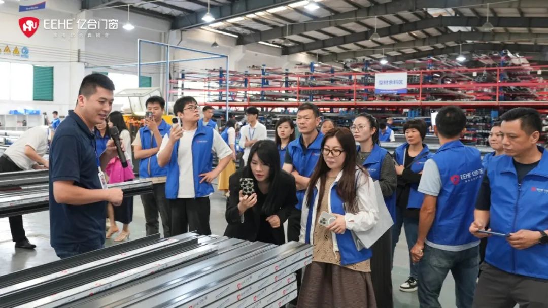 培訓課程結(jié)束后,商學院導師團隊帶領(lǐng)新商實地探訪總部工廠。通過沉浸式參觀,新商直觀感受億合門窗嚴格的生產(chǎn)標準與精湛工藝,深入了解產(chǎn)品專利技術(shù)、功能特性及工藝細節(jié)。導師現(xiàn)場答疑解惑,幫助新商深化產(chǎn)品認知,切實提升學習成效。