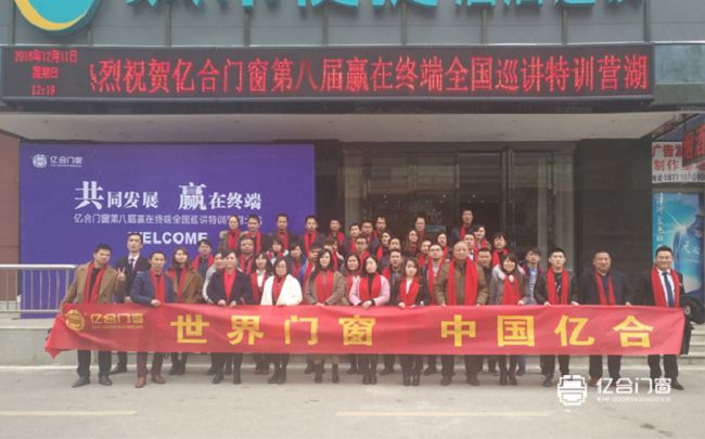 為幫助全國(guó)億合門窗加盟代理戰(zhàn)略合作伙伴更好、更快成長(zhǎng),2016年12月11日--12日,為期兩天的《億合門窗贏在終端全國(guó)巡講特訓(xùn)營(yíng)》在湖北武漢隆重舉行。湖北區(qū)域各門窗加盟代理旗艦店、專賣店老板、店長(zhǎng)及銷售精英共同參與此次為期兩天的培訓(xùn)活動(dòng)!