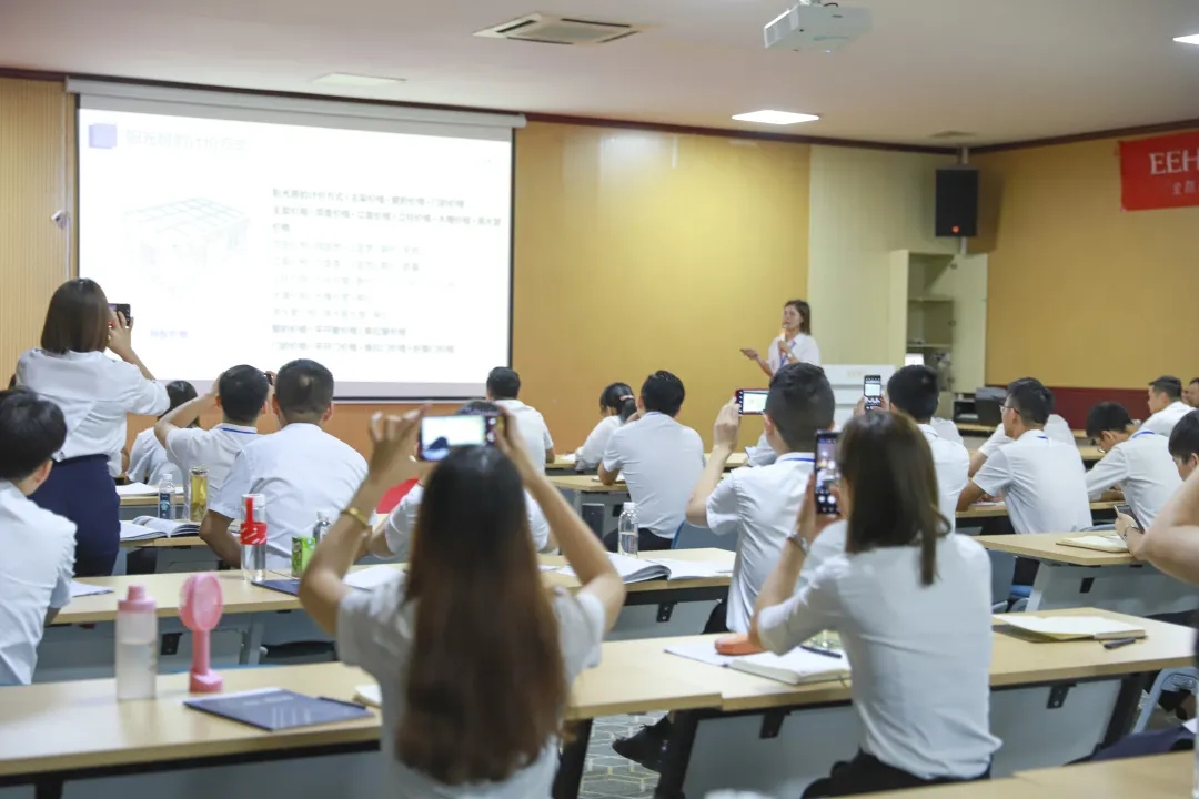 培訓(xùn)會上,講師首先通過企業(yè)文化、產(chǎn)品的基礎(chǔ)知識、綜合概述以及計價、市場調(diào)研、門店管理等方面進行講解。產(chǎn)品的培訓(xùn)包括鋁合金門窗、陽光房的介紹,全面了解產(chǎn)品核心競爭力,深化營銷戰(zhàn)略。