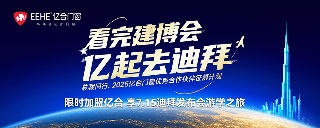 7月炎夏,當90%的家居建材品牌在廣州開啟搶商大戰(zhàn)時,有個頭部門窗品牌卻發(fā)起了 “看完建博會 億起去迪拜” 的 “另類招商活動” :限時加盟億合門窗,就能跟億合董事長和優(yōu)秀經(jīng)銷商一起去迪拜,見證中國門窗首場全球品牌發(fā)布會,并實地考察中東門窗市場。