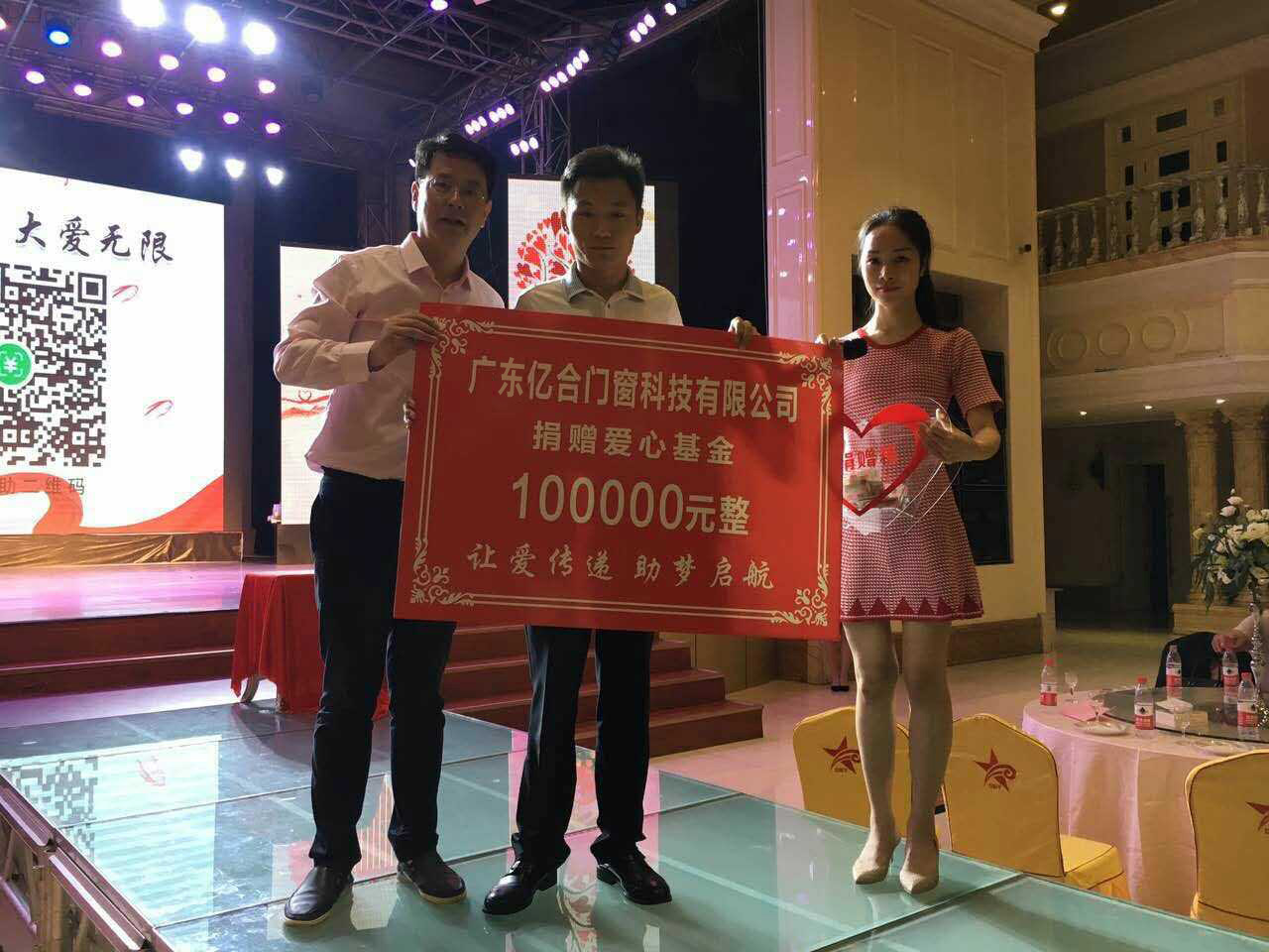 2017年9月9日,億合門窗常務副總經理胡超先生滿懷著一顆對十堰教育事業(yè)的關切之心,特意從廣東趕回到十堰,出席了在湖北省十堰市舉行的湖北省鄖陽啟航教育基金會成立揭牌儀式暨慈善捐助答謝會,在答謝會上,胡總代表公司向鄖陽啟航教育基金會捐款10萬元整,自公司成立以來,億合門窗已經為十堰教育事業(yè)累計多次捐贈款項及教學設備。