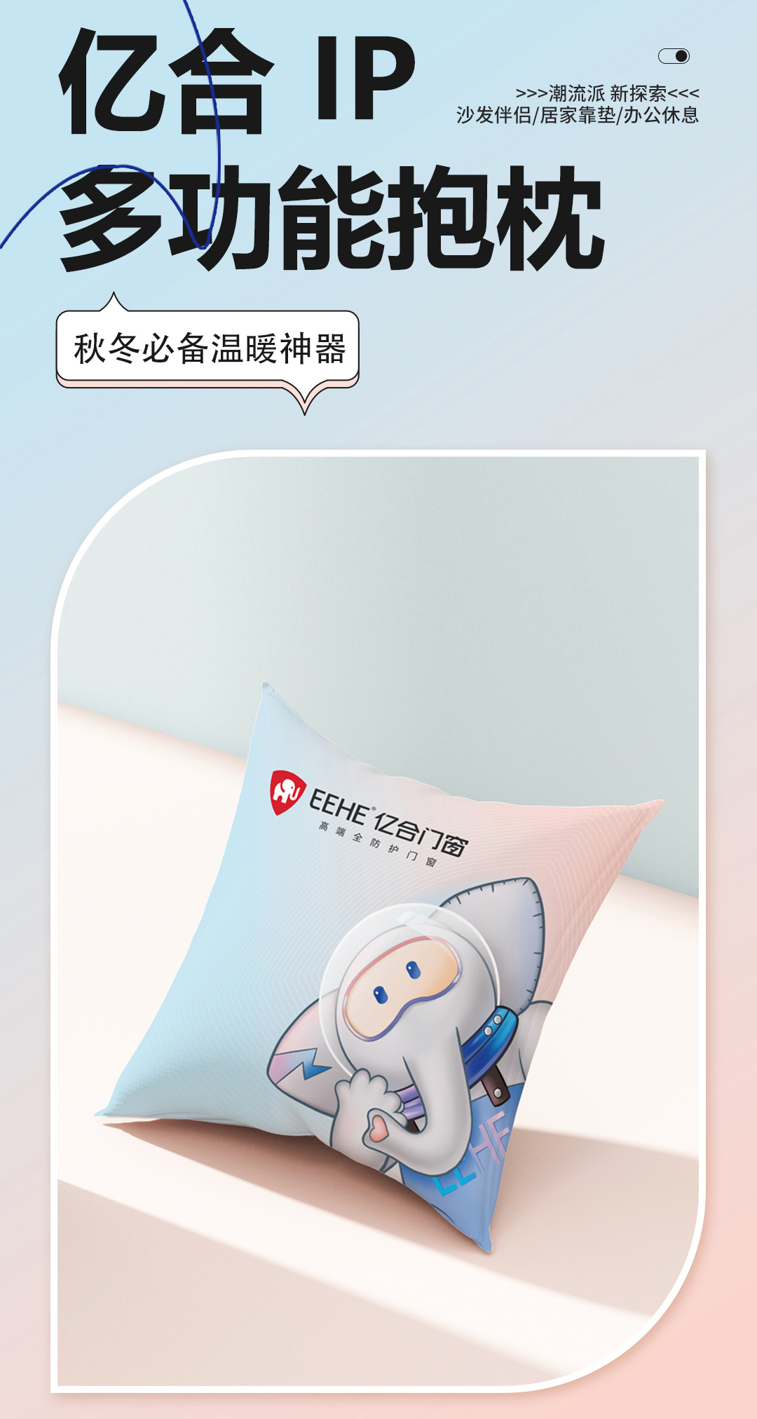 億合門窗打造多功能IP形象專屬抱枕 冬必備溫暖神器